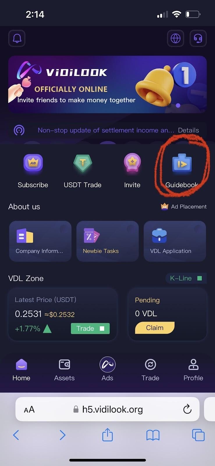 Once your USDT Trc20 lands in your account, you can then go buy your packages. Click the “Home” tab.