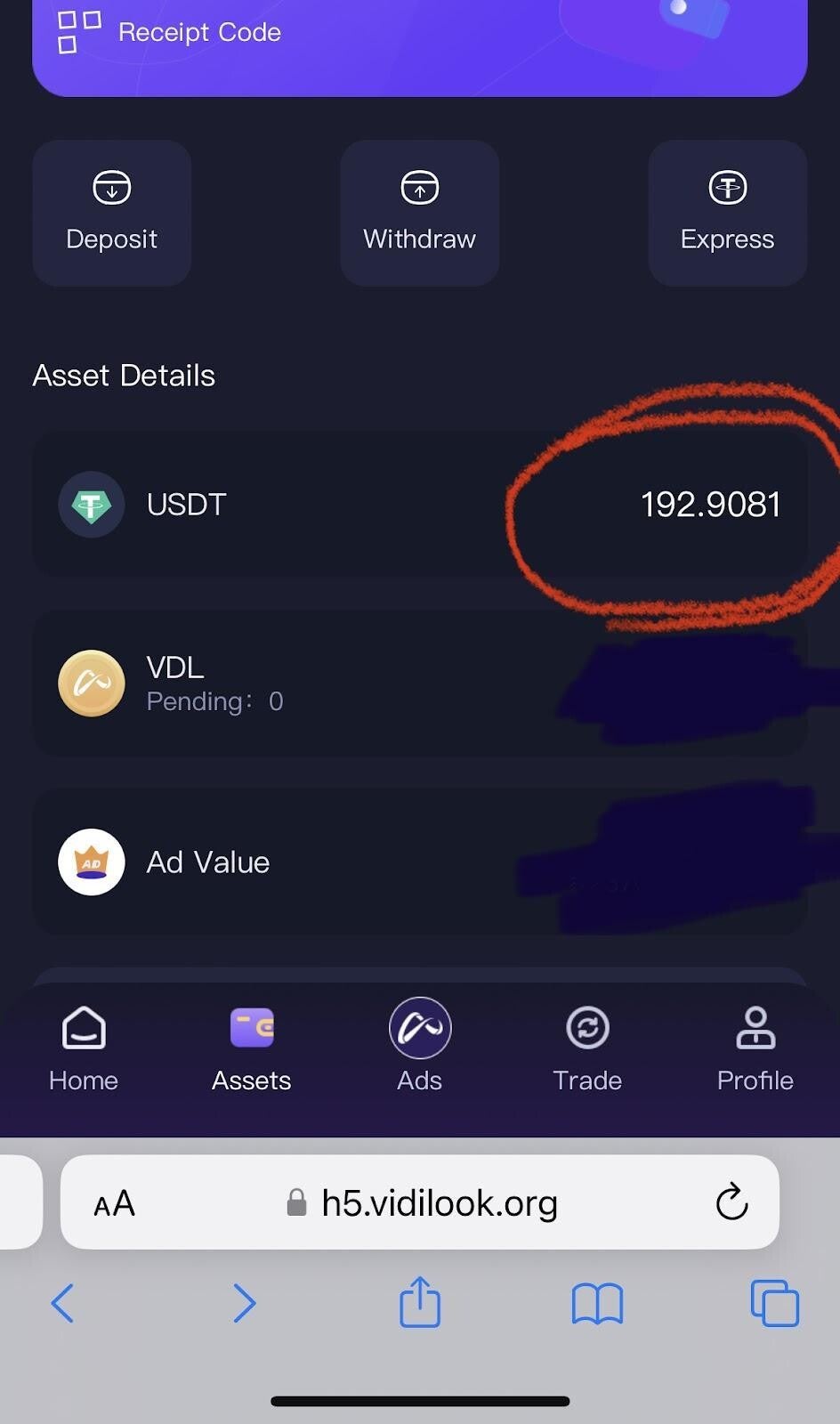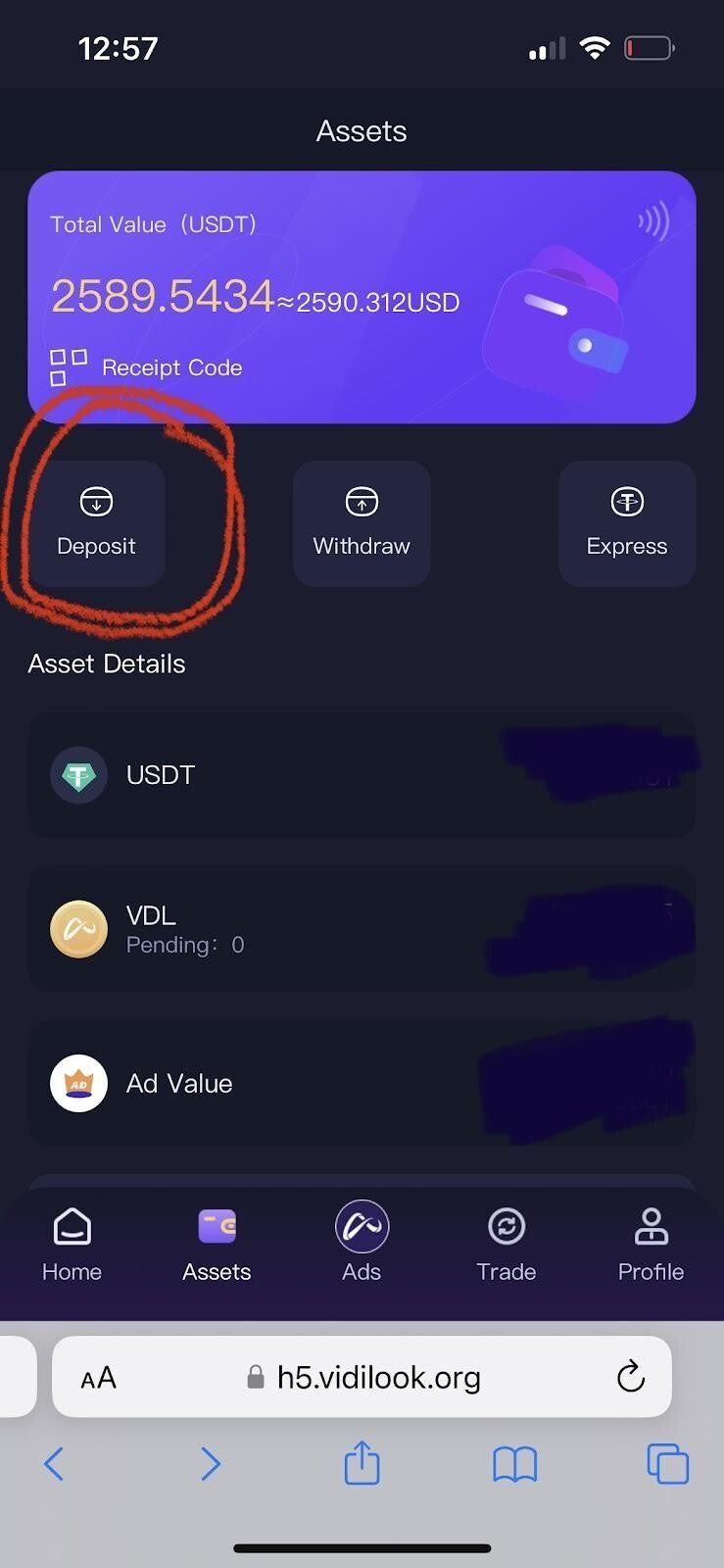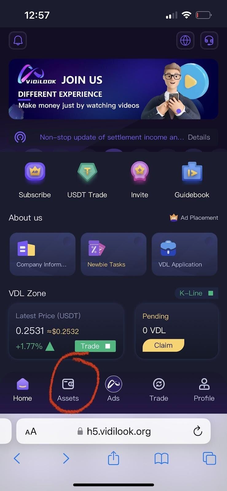 When your USDT Trc20 lands in your account. It will be under the “Assets” tab where it is circled below. You cannot proceed further until that happens